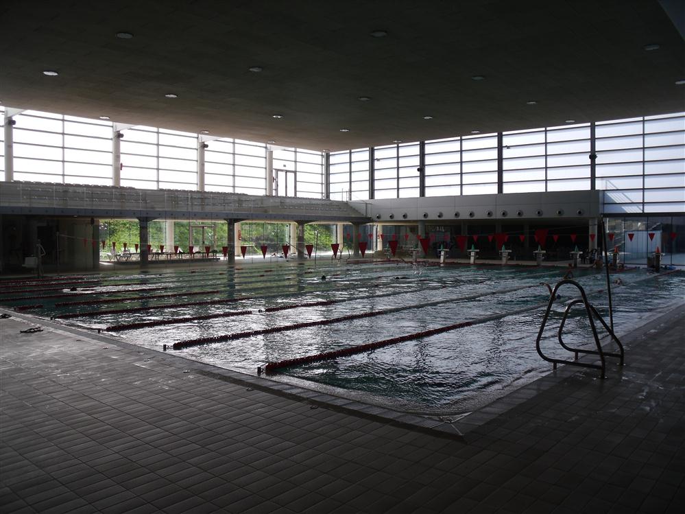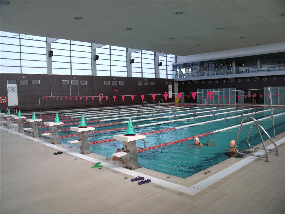 - Tiene 6 calles y dos toboganes. Estas últimas no invaden las calles. Uso simultáneo. Hay 5 duchas exteriores junto a las dos piscinas exteriores. Hay solarium junto a esta zona deportiva.