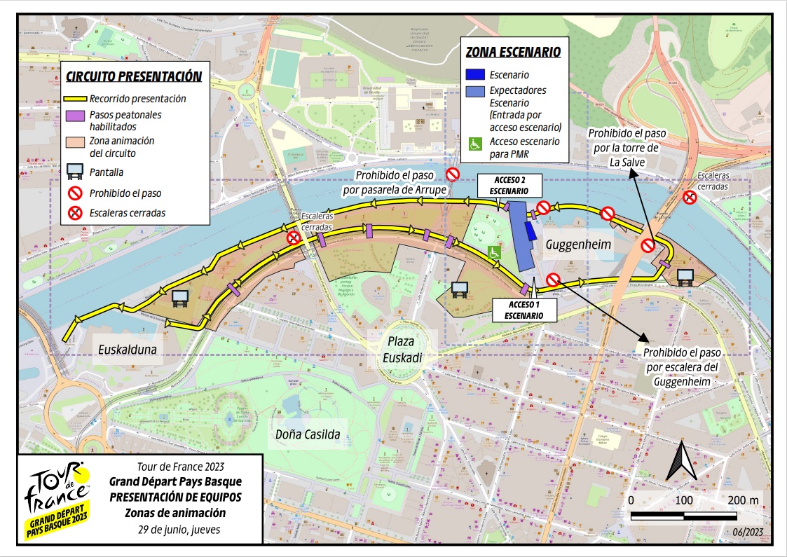 El público podrá ser participe de este evento gratuito durante todo el circuito que realicen los equipos desde el Palacio Euskalduna hasta el Museo Guggenheim Bilbao. El público podrá seguir el recorrido de los ciclistas tanto durante el circuito circular, de ida y vuelta, que realizará desde el Palacio Euskalduna hasta el Museo Guggenheim Bilbao (se adjunta mapa), así como en la explanada del Museo. El acceso a este espacio también será gratuito, pero se controlará la entrada del público, que podrá acceder a partir de las 16:00h, para no sobrepasar el aforo permitido para el correcto y seguro desarrollo del acto. Durante el recorrido también se instalarán tres pantallas gigantes para que la afición pueda disfrutar en directo de la presentación de los equipos.