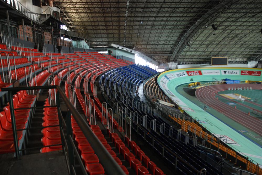 - Pista central donde hay una pista polideportiva de fútbol sala o balonmano. Cuando se hizo la visita se habian retirado las porterías porque iba a haber una competición de atletismo.