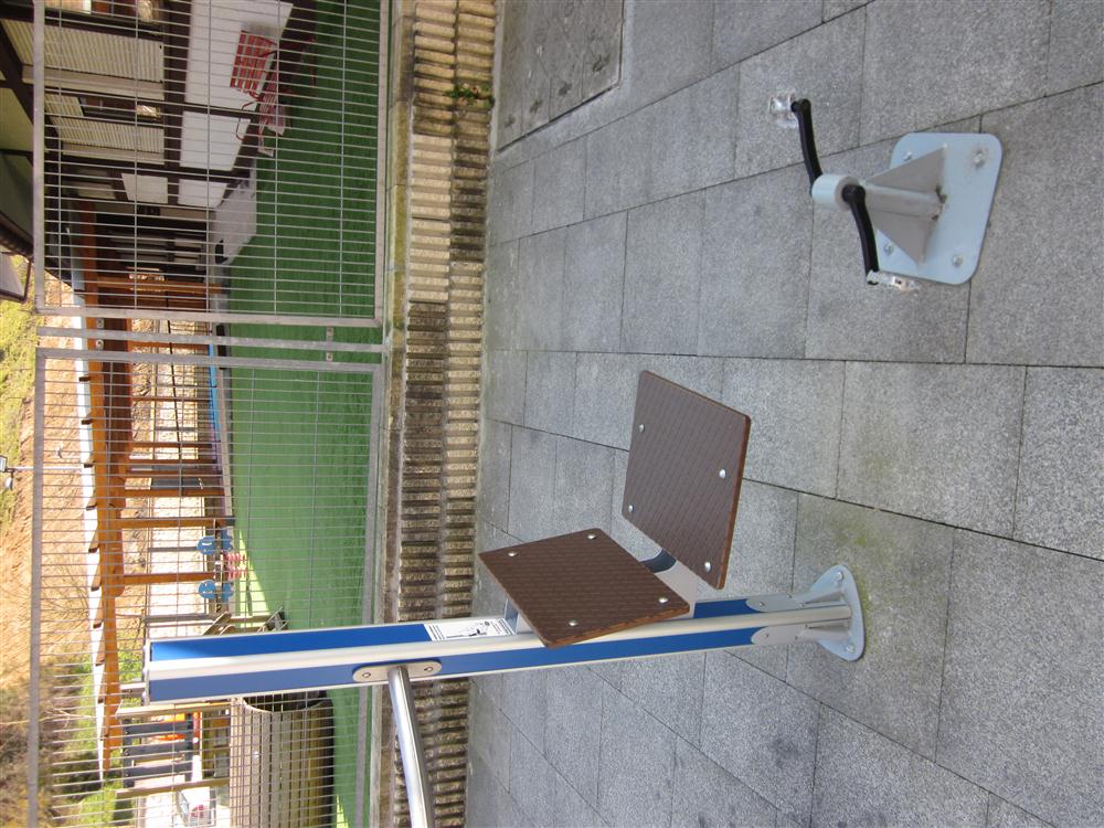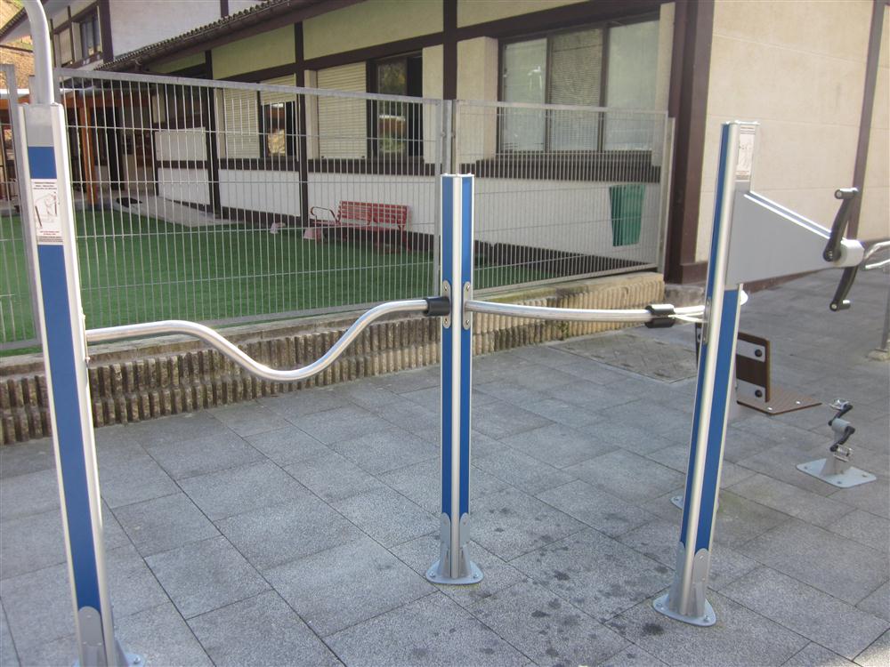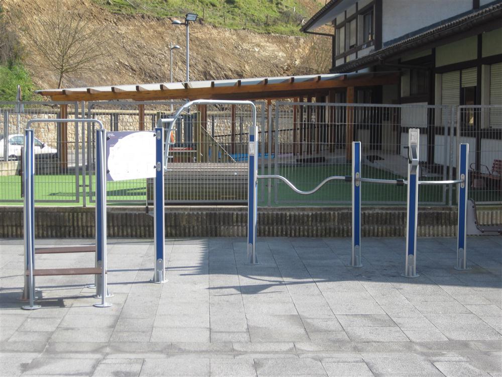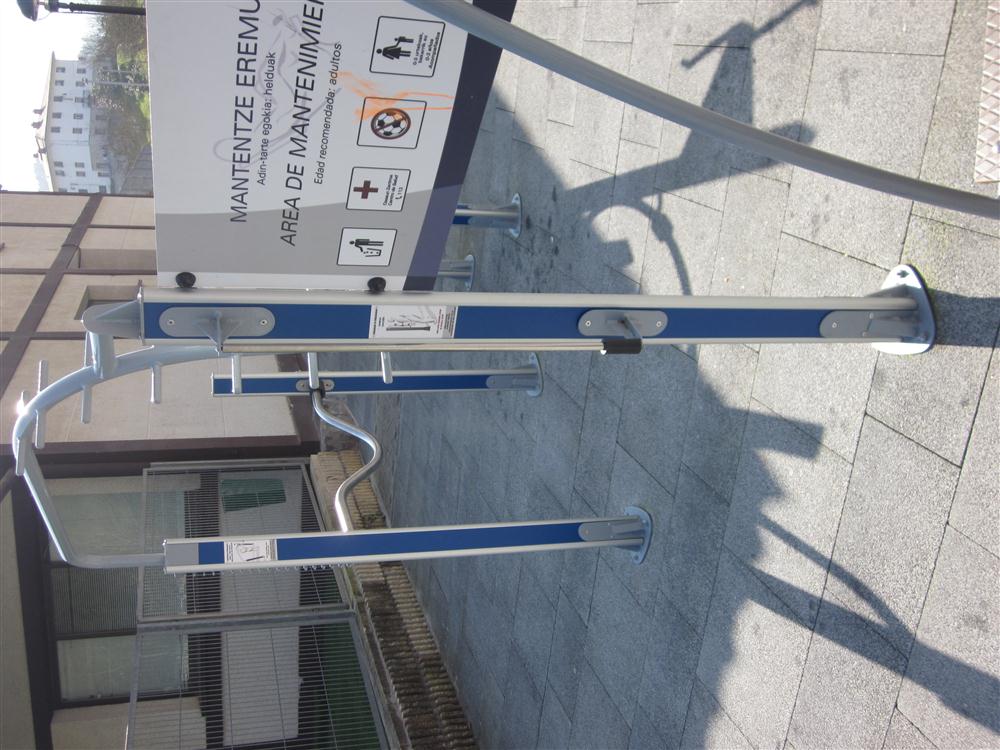 Existen zonas donde el pavimento es de baldosa flotante. Remodelación: puesta area de mantenimiento para adultos. La superficie es una estimación ya que se usan varios sitios de la plaza. la instalacion se divide en dos zonas, zona pedales ( 4 pedales en 600m2) y la zona de ejercicios múltiples (9ejercicios en 60 m2)