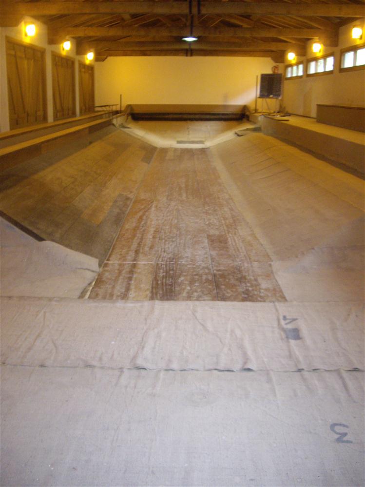 • El pavimento es mezcla de arena y madera. Realmente se juega a el juego de nueve ayales o bolatoki se desarolla en un terreno de juego denominado carrejo que consiste en un rectangulo de arcilla rodeado de maderos y formando un pronunciado remonte en sus dos lados más largos y en el del frente al jugador.