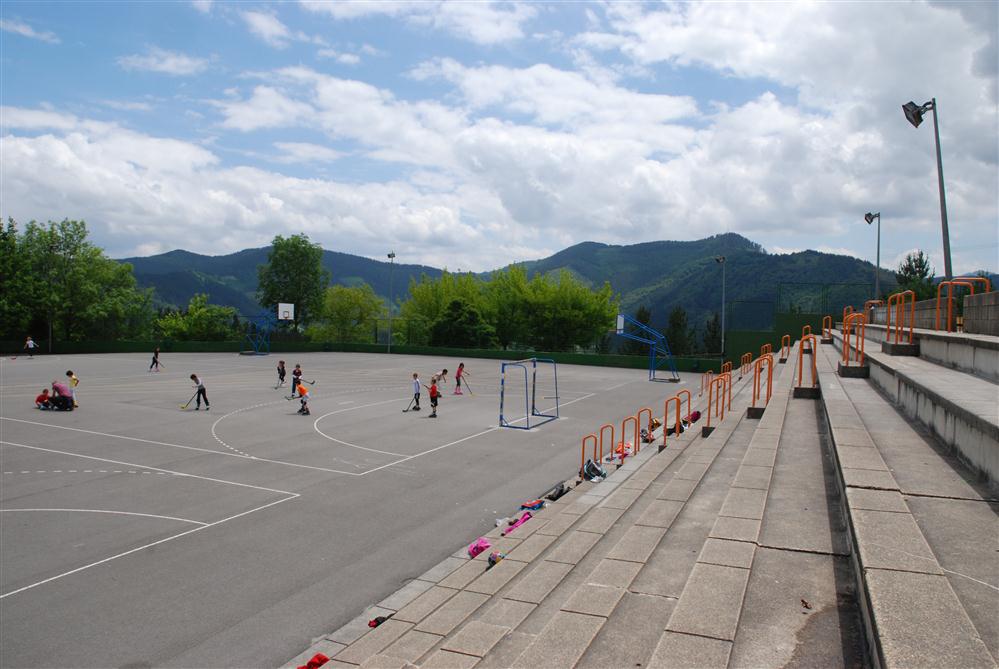 - Pista polideportiva de 800 m2 (entre 800 y 1000 m2)