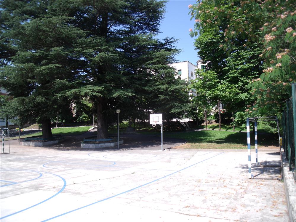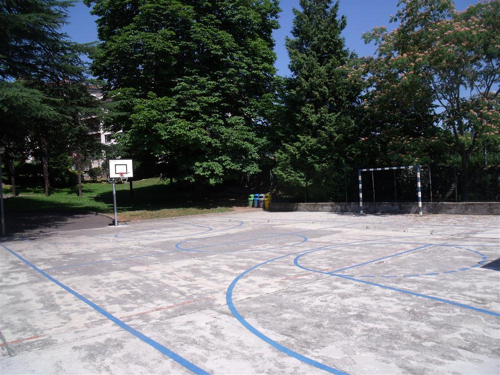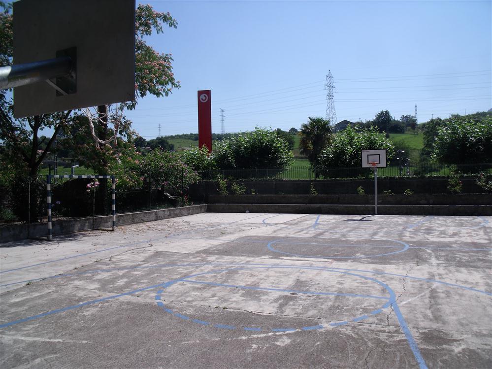 - Hay presencia de vegetación en el pavimento. La pista de baloncesto posee una portería de fútbol.