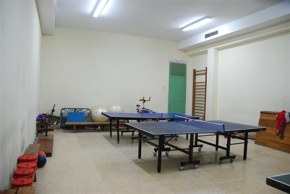 - Sala que hoy en día sobre todo lo usan para practicar el tenis de mesa, pero también tiene algún aparato de musculación.