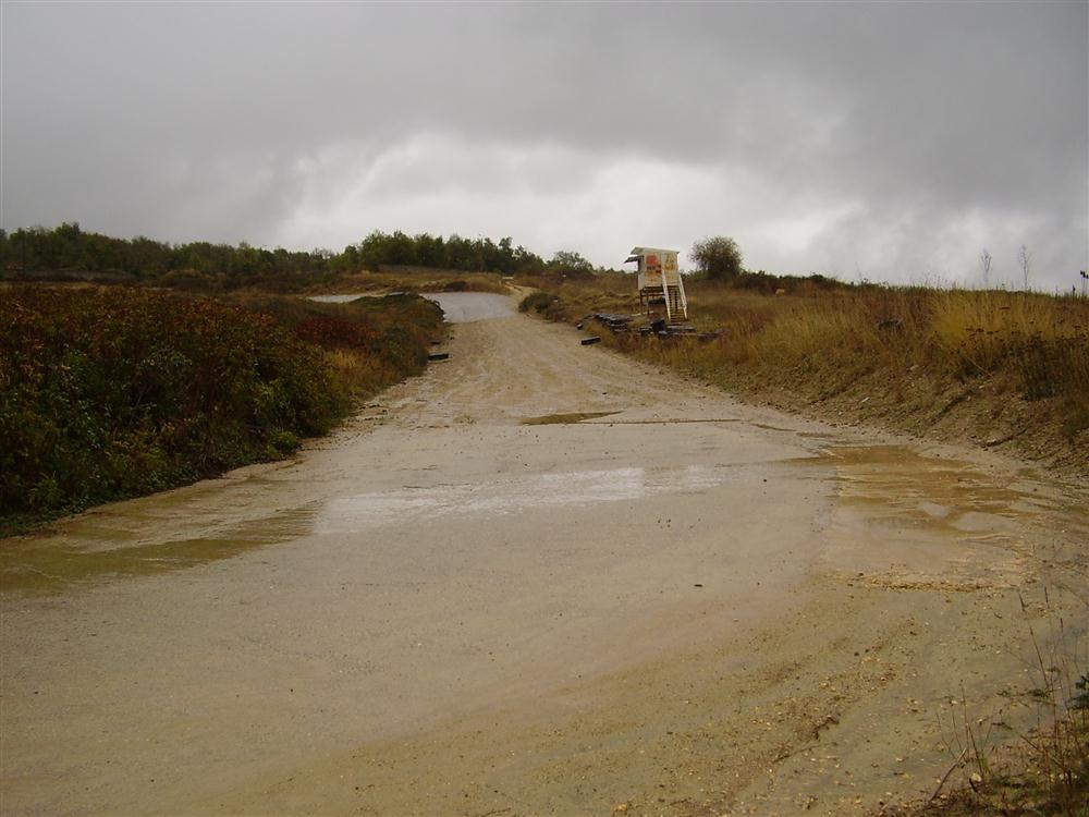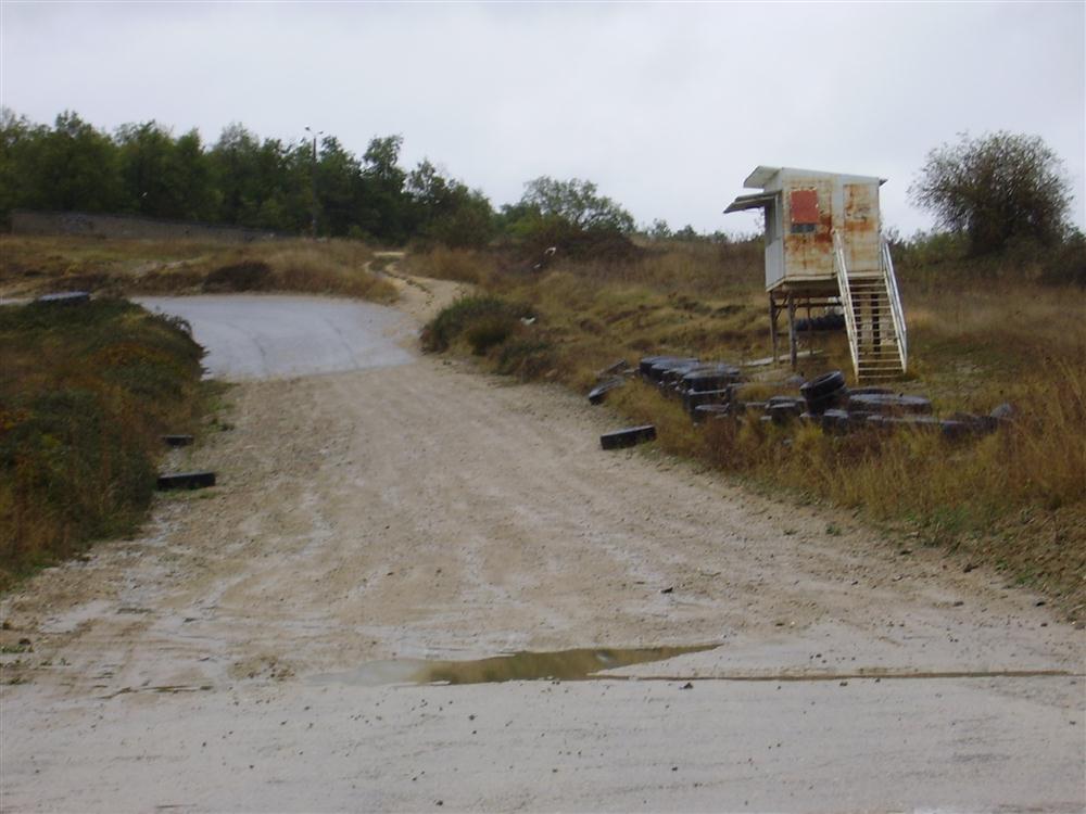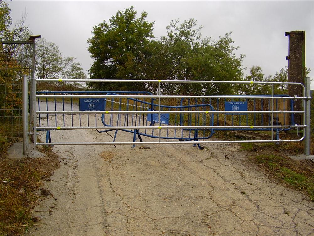 ESTÁ SEÑALIZADO CON UNA BALIZA PROVISIONAL DE LA POLICÍA LOCAL PARA EVITAR LA ENTRADA DE PERSONAS Y VEHÍCULOS CUANDO NO HAY COMPETICIONES. TAMBIÉN HAY TRAMOS DE ASFALTO.