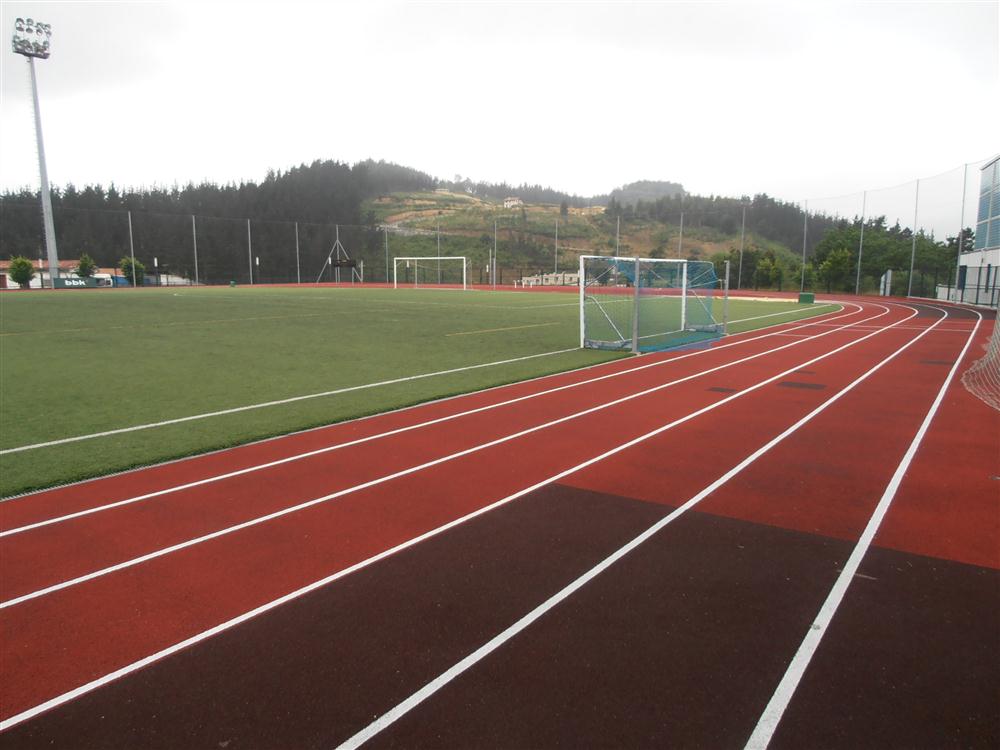 - Pista de atletismo de 400 m. Pista de carreras de como mínimo 400 m de cuerda