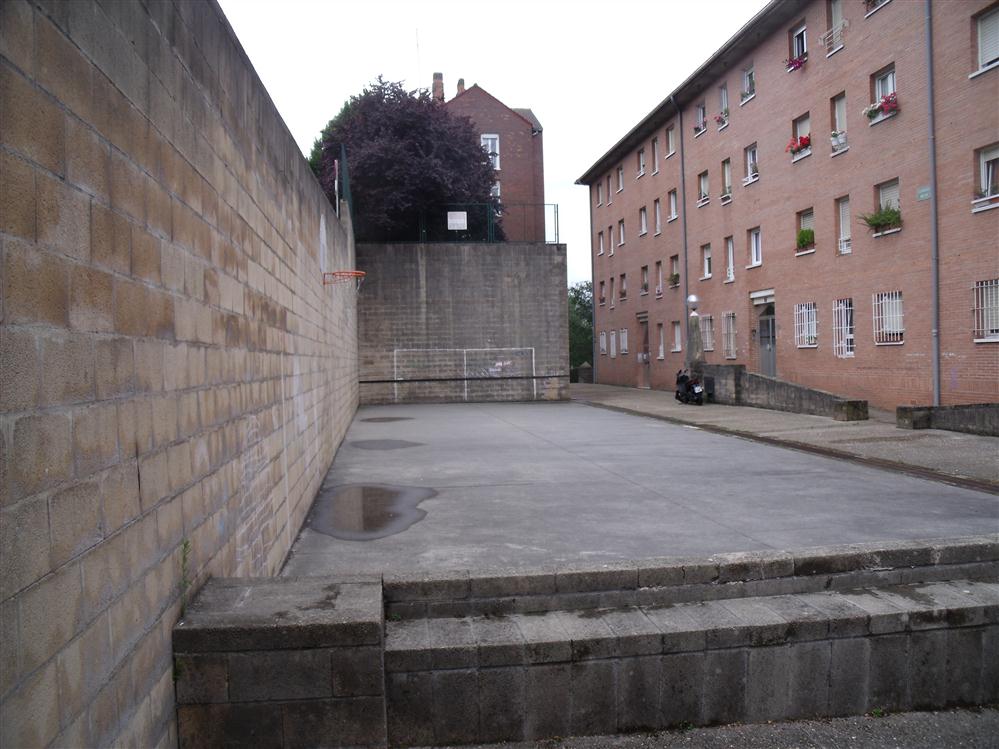 Hay una canasta en la pista de este frontón.