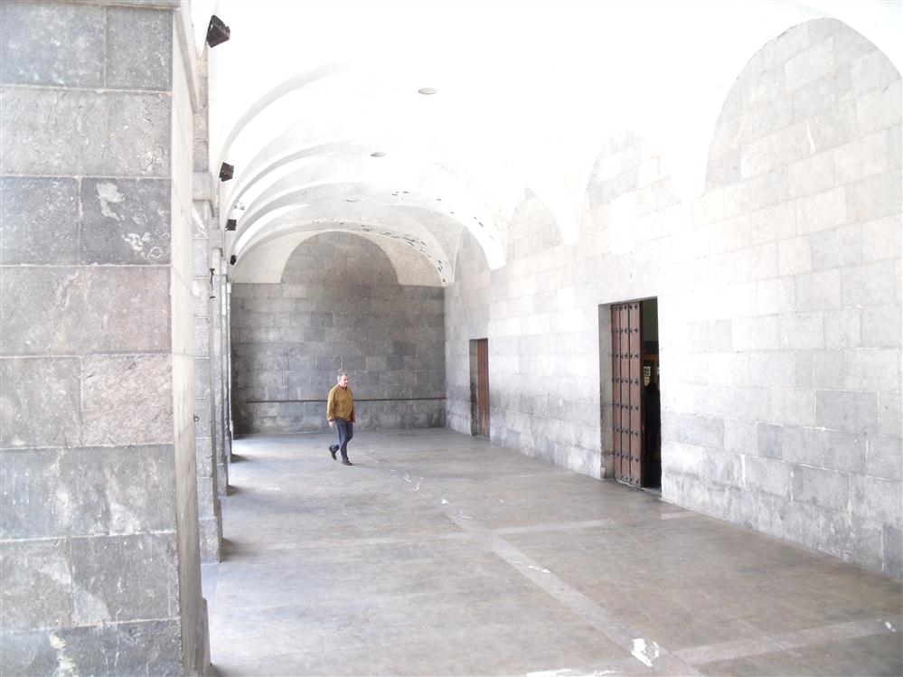 Frontón histórico. La altura de la pared es variable.