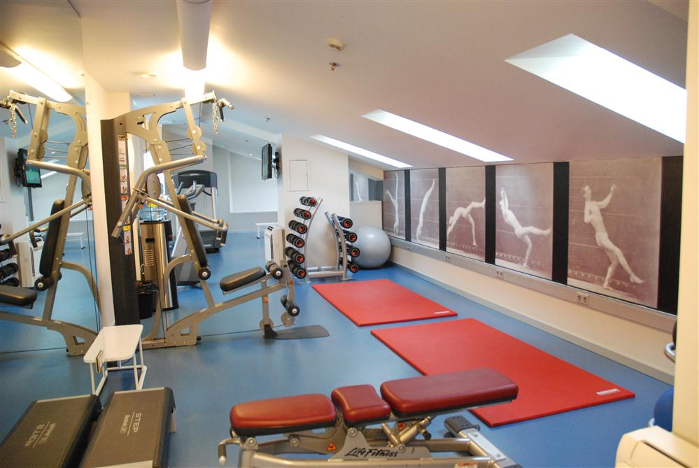 Sala equipada. Equipada con aparatos gimnásticos, de musculación, cardiovascular, etc.