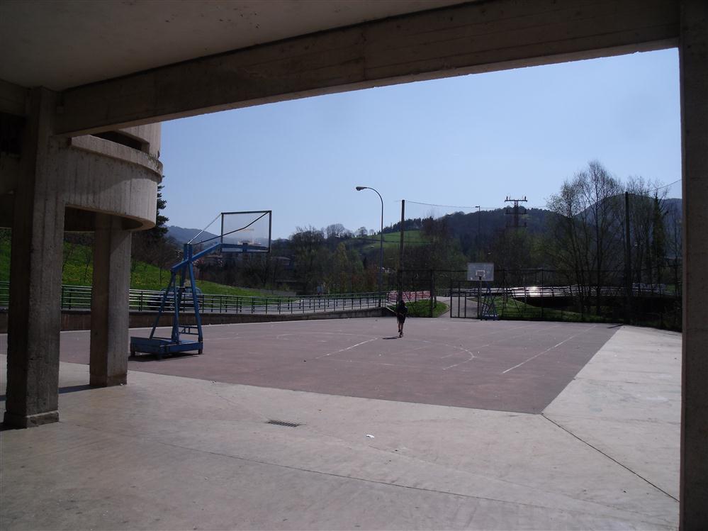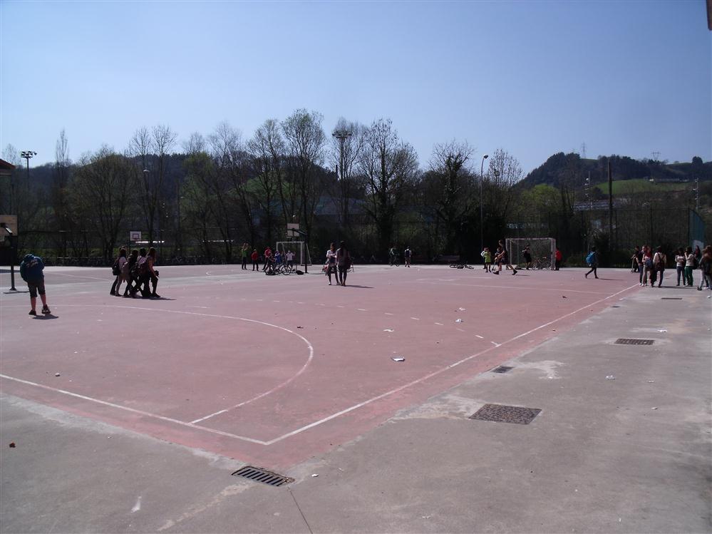 - Esta pista posee dos porterías de balonmano y cuatro canastas. Se puede utilizar como pista de futbol (balonmano) o como dos pistas de baloncesto.