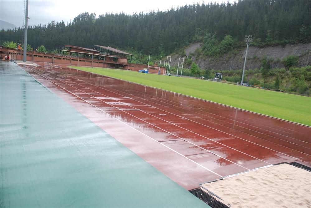 - Pista de atletismo de 400 m. Pista de carreras de como mínimo 400 m de cuerda