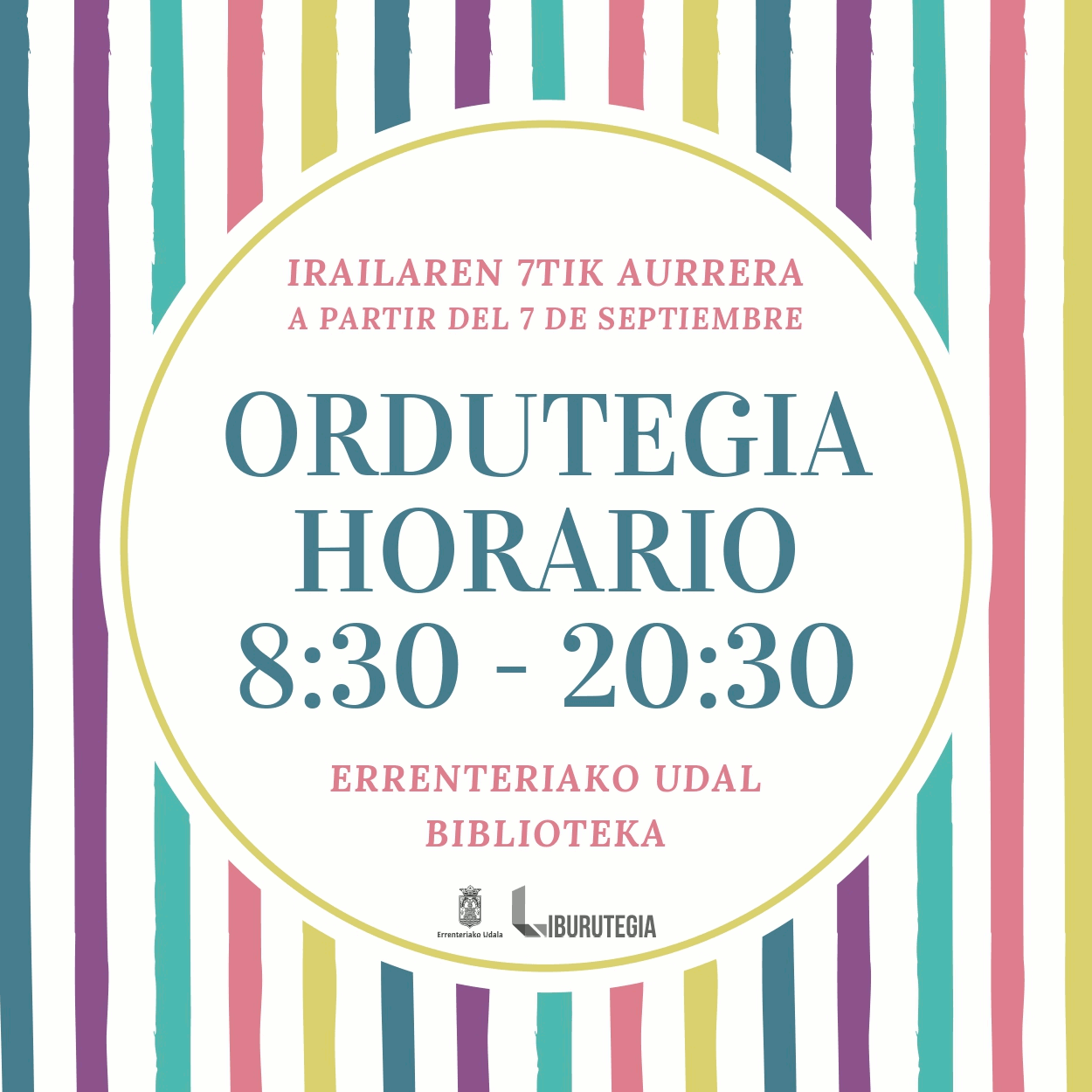 Irailaren 7tik aurrera, liburutegia ohiko ordutegiarekin hasiko da, behin-behinean.