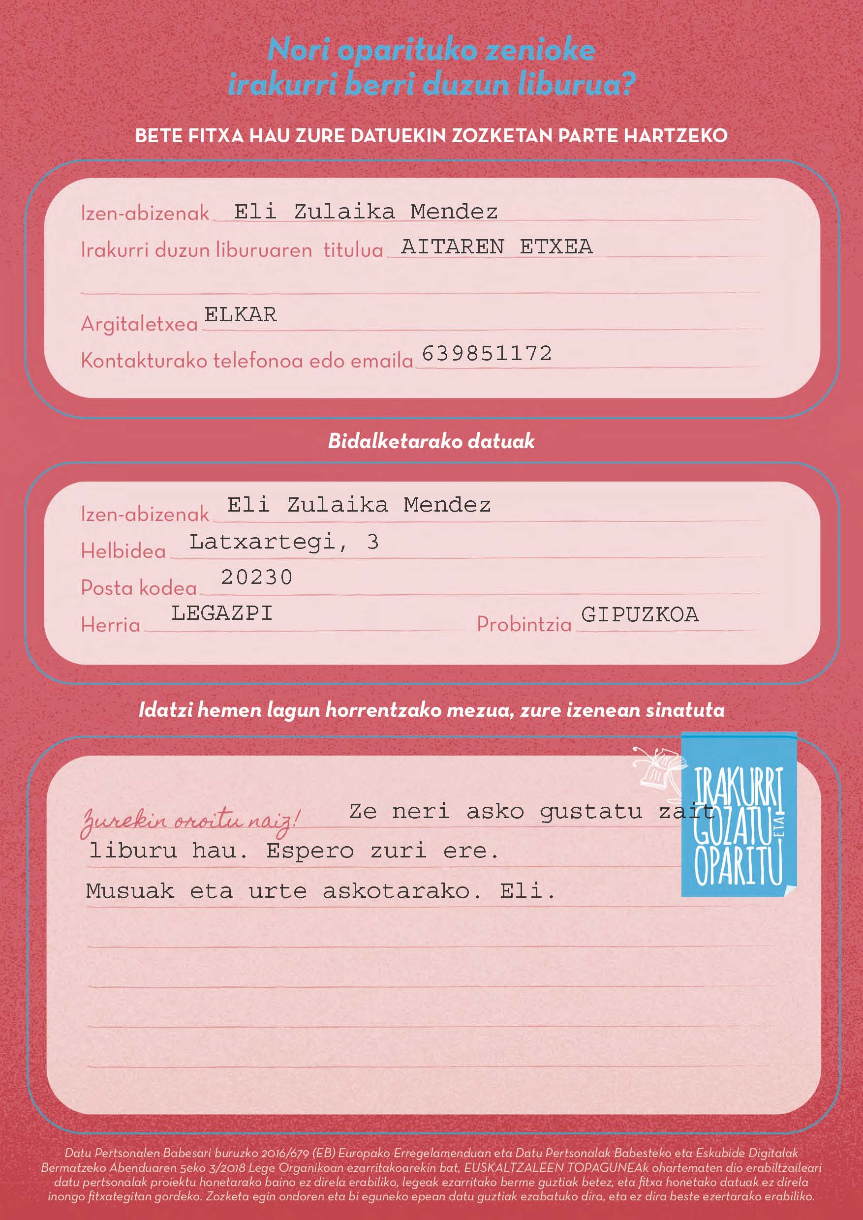 "Irakurri, Gozatu eta Oparitu" partehartze fitxa hemen. (PDF)