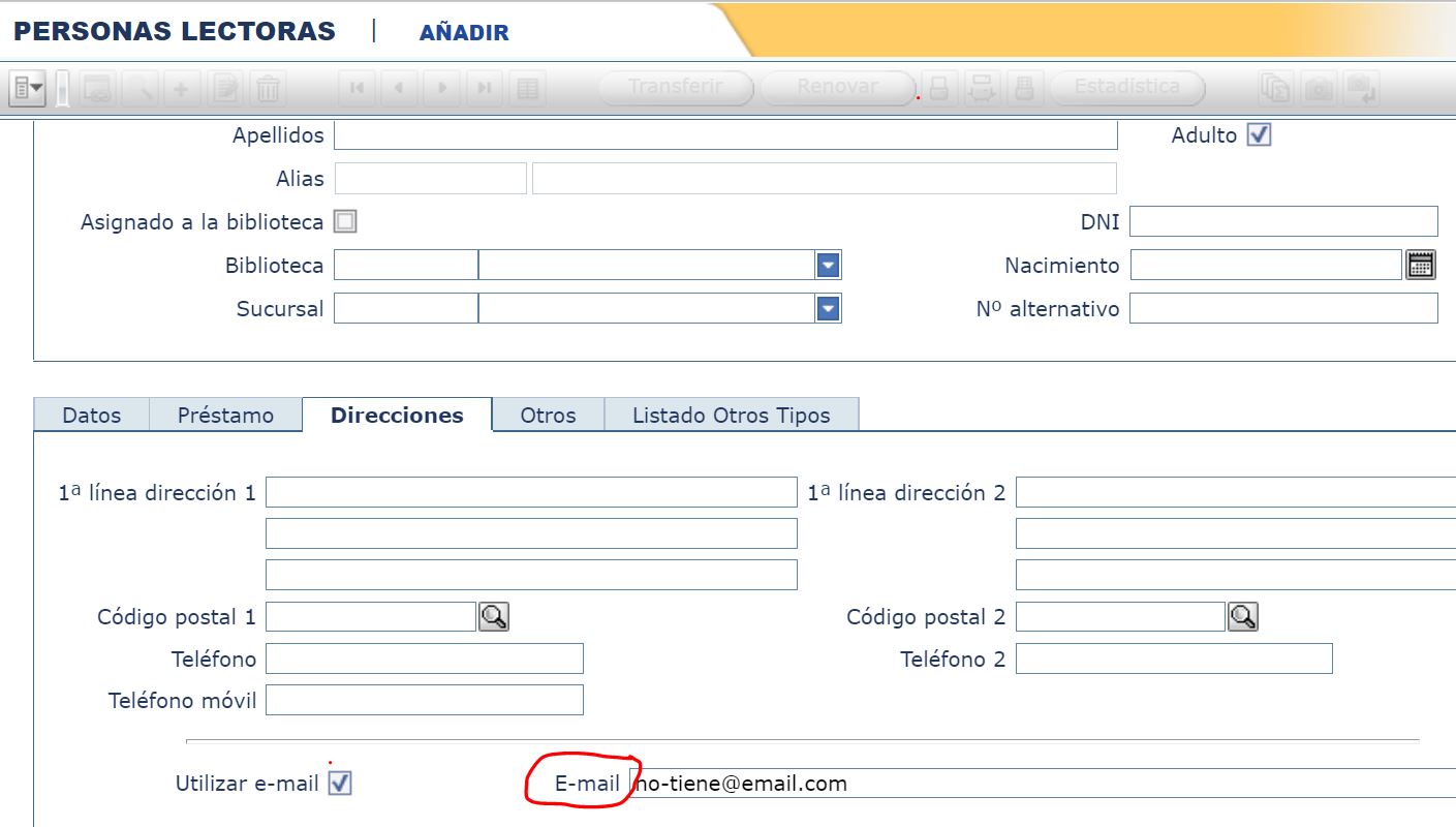 - Helbide elektronikoa: irakurleek nahitaez izan beharko dute e-mail bat SMSak bidali ahal izateko. Irakurle baten e-maila ezagutzen ez badugu, baina mugikorra bai, aldi baterako fikziozko e-mail bat erabili ahal izango dugu no-tiene@email.com sistemak SMSak bidaltzeko.