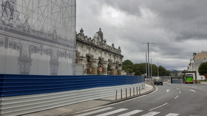 Eraikinaren interesik handiena perspektibaren hondoa Maria Kristina zubitik egitea da, haren ardatzaren luzapenean baitago. 2013. eta 2017. urteen artean, arkupea desmuntatu eta berreraiki egin zen, lurpeko autobus-geltokia eraikitzearen ondorioz. Lehenago ere desmuntatu zuten, 1992an.