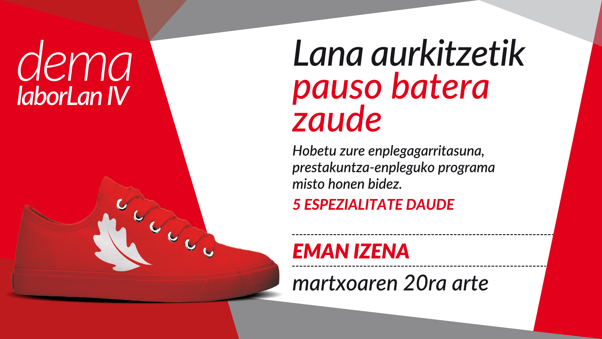 Laborlan IV programa beren enplegagarritasuna hobetu nahi duten pertsona guztientzat pentsatuta dago, eta parte-hartzaile guztiek enplegu bat aurkitu ahal izatea du helburu nagusi.