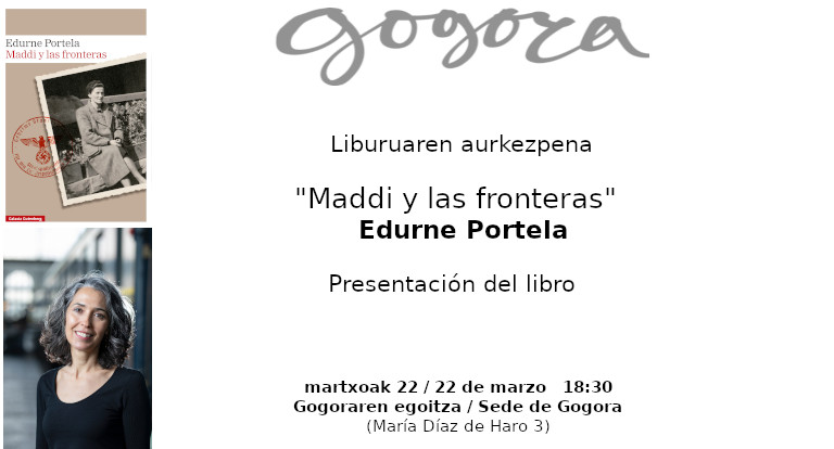 Edurne Portelak ‘Maddi y las fronteras’ argitaratu berri duen liburua aurkeztuko du, martxoaren 22an, 18:30ean, Gogoraren egoitzan, Bilbon. Berarekin izango da Aintzane Ezenarro, Memoriaren, Bizikidetzaren eta Giza Eskubideen Institutuaren zuzendaria.