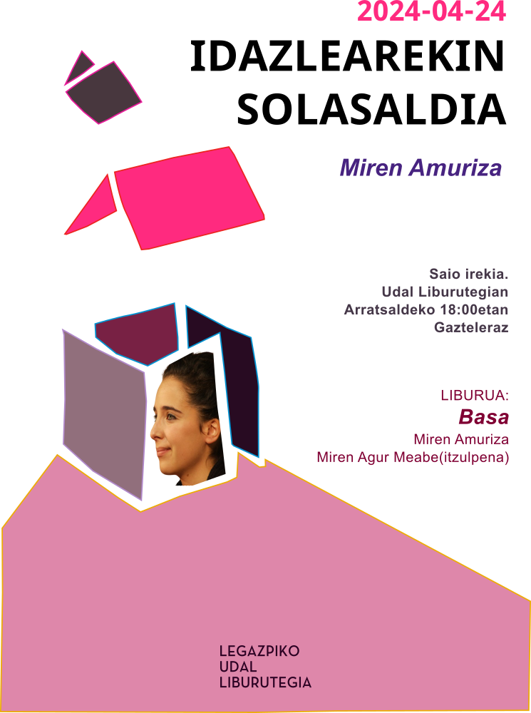 Miren Amuriza idazlearen "Basa" eleberria irakurrita eraman, eta haren gaineko solasaldia egingo dute idazlea bertan dela. Miren Agur Meabek gaztelerazko itzulpena egin dio bere jatorrizko euskarazko lanari eta saioa izan, gazteleraz izango da.