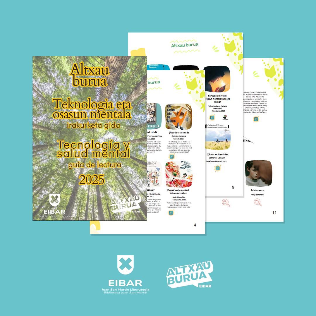 Eibarko Liburutegiak Altxau Burua Eibar guraso elkartearekin elkarlanean irakurketa gida berria prestatu du, teknologiaren eta osasun mentalaren arteko harremanari buruzko baliabide erabilgarriak eta eskuragarriak eskaintzeko helburuarekin.