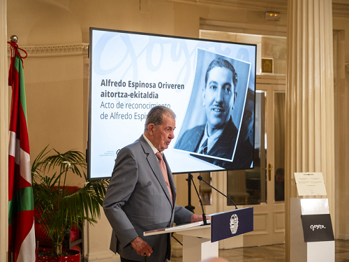 Alfredo Espinosa eta Francisca Gómezen semeak errekonozimendua jaso du lehendakariaren eta Justizia eta Giza Eskubideetako sailburuaren eskutik, eta berarekin izan dira lau seme-alabak eta arrebaren bi seme-alabak, María Victoria Espinosa Gómez, hilda dagoena.