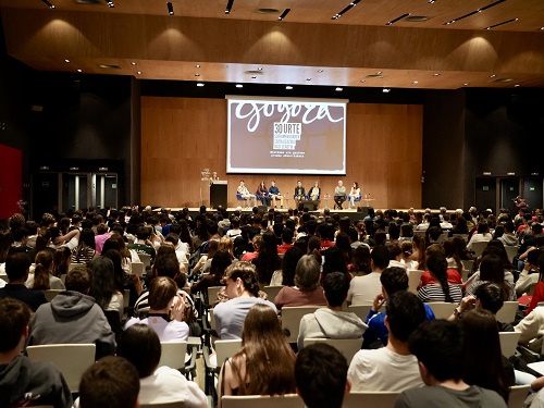 Sailburuaren hitzaldiarekin hasi da ‘Sufrimenduaren Sozializazioaren 30 urte. Biktimen eta gazteen arteko elkarrizketa’ Memoriaren, Bizikidetzaren eta Giza Eskubideen Institutuak antolatua. Eszenatokian, bigarren hezkuntzako hiru ikasle eta hiru biktima, Dani Álvarez kazetariarekin batera.