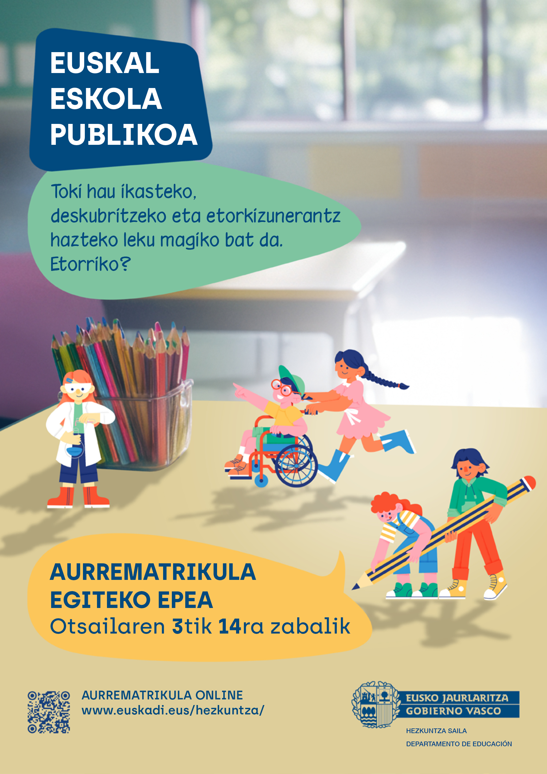Hezkuntza Sailak Euskal Eskola Publikoan aurrematrikulazioa egiteko datak ezarri ditu.