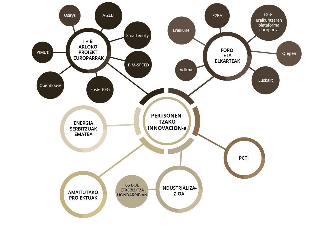 Garatutako proiektuei esker, pertsonen bizitza hobetzen lagunduko duten etxebizitzak daude, EAEn hiriko etxebizitzak kudeatzeko eta eraikitzeko teknika berriak baliatuz, eta funtsezko 4 ardatzetan oinarrituz: iraunkortasuna, eraginkortasun energetikoa eta irisgarritasuna.