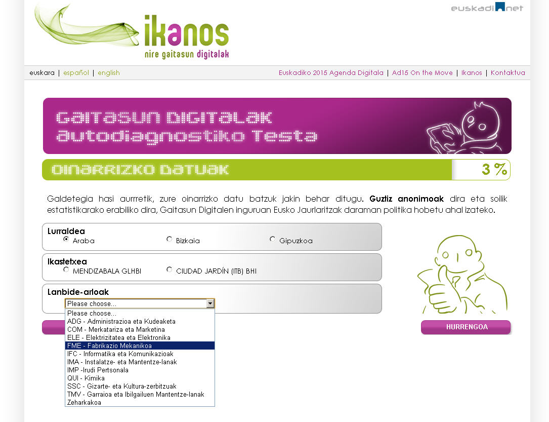 Helburu honekin bat eginda, Eusko Jaurlaritzaren Ekintzailetza, Berrikuntza eta IGren Zunendaritzatik Ikanos proiektuaren barne, gaitasun digitalen eremuan diagnostiko orokor bat egiteko tresna diseinatu du, “Ikanos autodiagnostiko testa” deritzona.