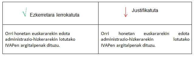 Adibide honetan, bistan da bigarren zutabeko testuan lehenengo zutabekoan baino hobeto bereizten dela edukien antolaera: