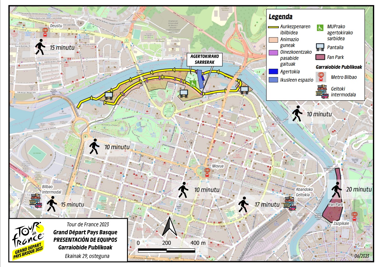 Publikoak doako ekitaldi honetan parte hartu ahal izango du taldeek Euskalduna Jauregitik Guggenheim Bilbao Museoraino egingo duten zirkuitu osoan zehar. Bertaratutakoek txirrindularien ibilbidea jarraitu ahal izango dute, bai Euskalduna Jauregitik Guggenheim Bilbao Museoraino egingo duten joan-etorriko zirkuitu zirkularrean, baita Museoaren zabalgunean ere. Gune horretara sartzea ere doakoa izango da, ikusleak 16:00etatik aurrera sartu ahal izango dira, baina zaleen sarrera kontrolatuko da ekitaldia behar bezala eta seguru garatzeko baimendutako edukiera errespetatuz. Ibilbidean zehar hiru pantaila erraldoi ere jarriko dira, zaleek taldeen aurkezpenaz zuzenean gozatzeko aukera izan dezaten.