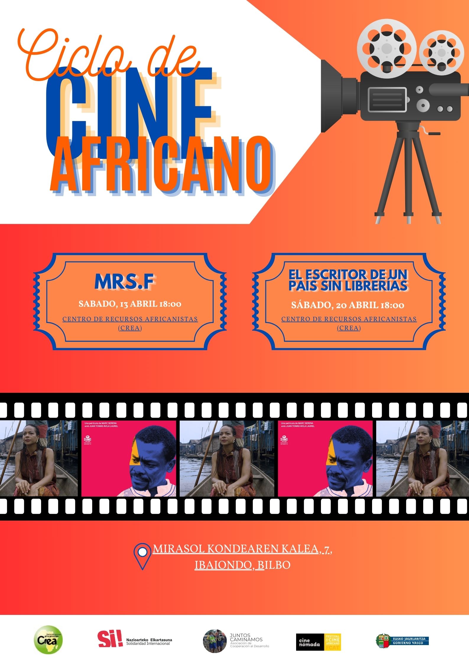 Afrikako Zinemaren Zikloaren 2. eta 3. saioak apirilaren 13an eta 20an izango dira, 18:00-20: 00, Afrikako Baliabideen Zentroan (Mirasol kondearen kalea, 7, Bilbo).