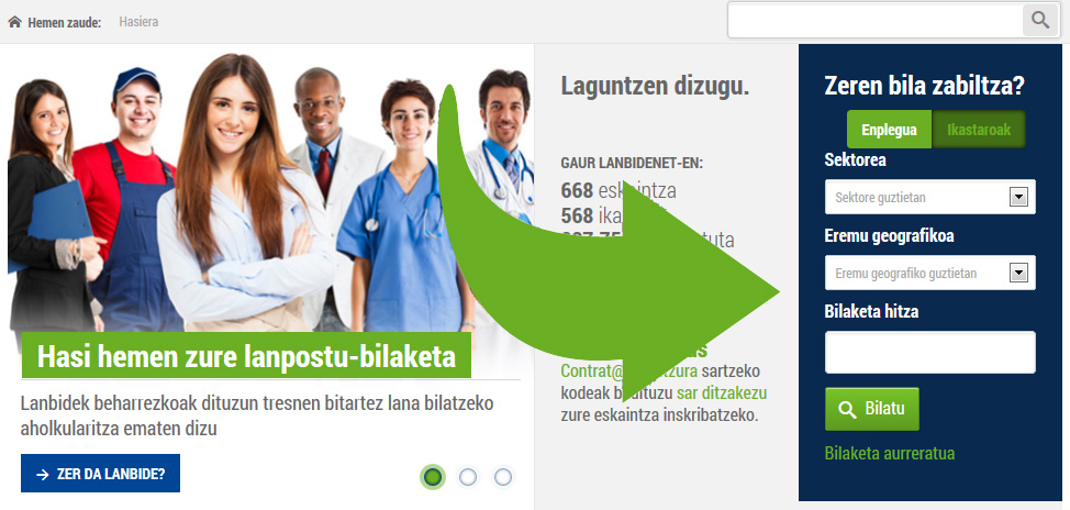 Orain, hasierako orrian bertan enplegu- eta ikastaro-bilatzaile indartsu bat daukazu; iragazki interaktibo berriak eta enpleguko alertak dituzu; eta informazioa sare sozialetan partekatu dezakezu enplegu-bilaketa errazteko eta azkartzeko, eta enpresek espazio pribatua eta tresnak dauzkate beren enplegu-eskaintzak argitaratzeko.