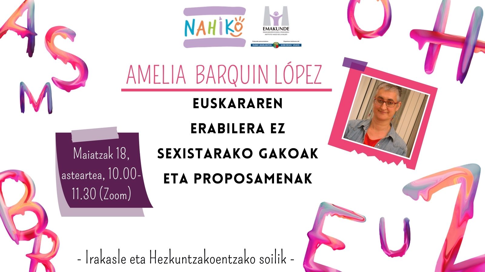 VII. Online Hitzaldia - AMELIA BARQUIN LOPEZ: "Euskararen erabilera ez sexistarako gakoak eta proposamenak" (2021eko maiatzak 18)