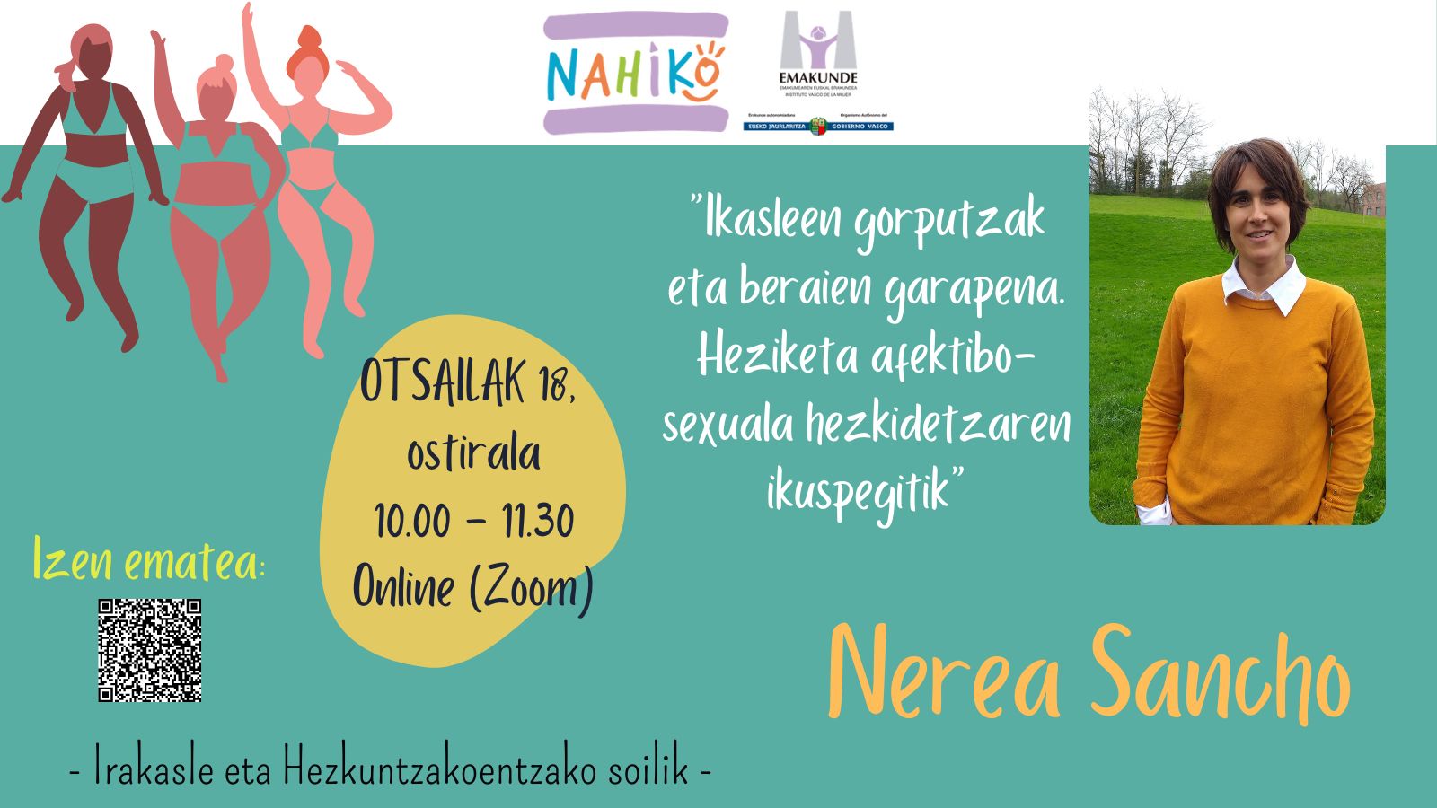 II. Online Hitzaldia - NEREA SANCHO: "Ikasleen gorputzak eta beraien garapena. Heziketa afektibo-sexuala hezkidetzaren ikuspegitik." (2022ko otsailak 18)