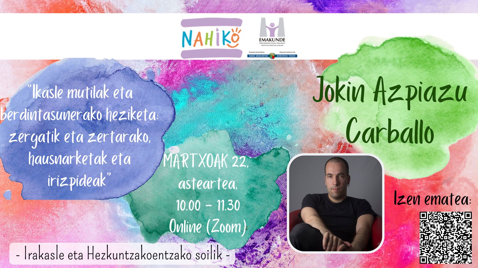 IV. Online Hitzaldia - JOKIN AZPIAZU CARBALLO: "Ikasle mutilak eta berdintasunerako heziketa: zergatik eta zertarako, hausnarketak eta irizpideak." (2022ko martxoak 22)