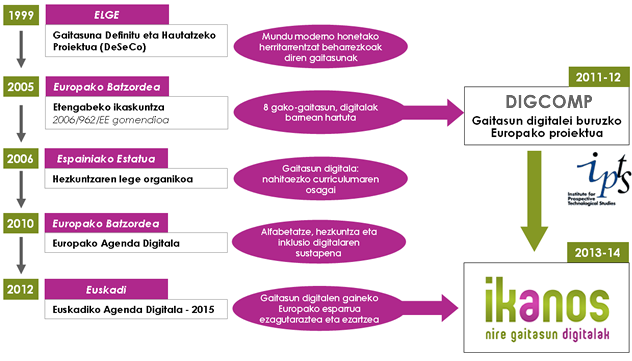 Parte-hartzean eta lankidetzan oinarritutako ikuspegi zabala izaki, IKANOS gaitasun digitalen gaineko Europako esparrua ezagutarazteko eta Euskadin ezarpena bultzatzekoproiektua da; IPTS (Institute for Prospective Technological Studies) institutuak zuzendu eta kudeatzen duen DIGCOMPeuropar proiektuaren ezarpenean oinarrituta sortu da eta Europako Batzordeak 2013an baliozkotu du.