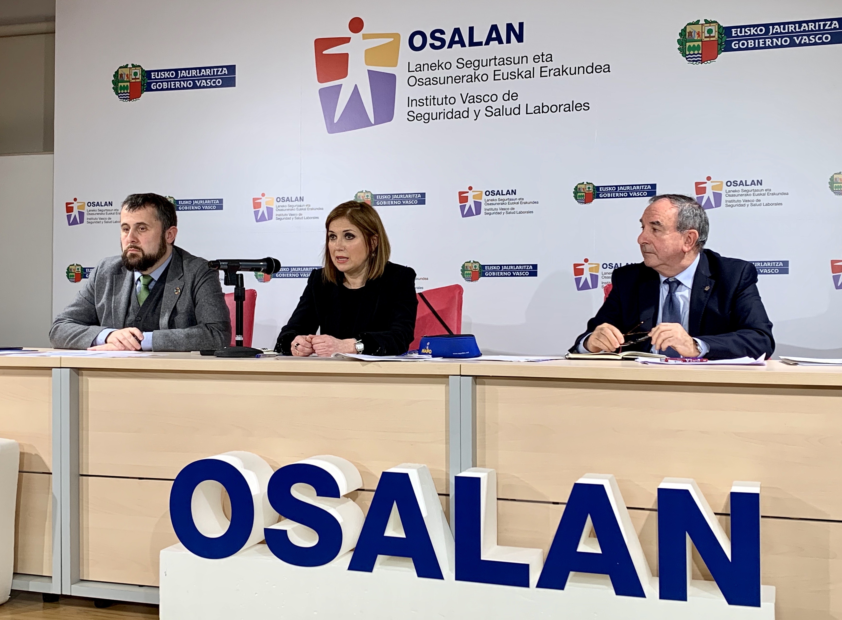 Gaur goizean, Lan eta Justiziako sailburuak, Laneko eta Gizarte Segurantzako sailburuordeak eta Osalaneko zuzendari nagusiak 2019. urtearen itxierari dagozkion ezbehar-kopuruari eta gaixotasun profesionalei buruzko datuen berri eman dute.