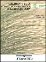 | Las dunas costeras suponen un ecosistema singular tanto por su dinámica como por su composición florística y faunística. En la playa de Laida se han realizado repoblaciones de las principales gramíneas dunares: Ammophila arenaria subsp. australis y Elymus farctus subsp. boreoatlanticus con el fin de restaurar el ecosistema dunar. Por otro lado, en la playa de Laida, ha tenido lugar la colonización natural por parte de varias especies vegetales y animales. En este informe se ha realizado un seguimiento de ambos ecosistemas, estudiando su evolución a lo largo del período comprendido entre otoño 2003 al verano 2004. En él se suministra la información completa y objetivada de lo existente y se hacen recomendaciones para la gestión de la biodiversidad con el objetivo de conseguir las condiciones de naturalidad óptimas en el ecosistema. |