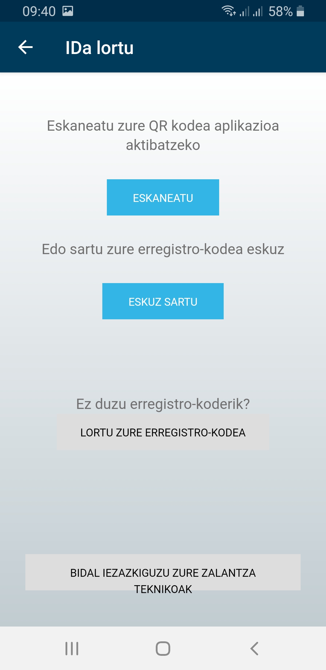 • Eskaneatu edo osatu Izenpek erakutsitako kodea zure ordenagailuaren alta-prozesuan.