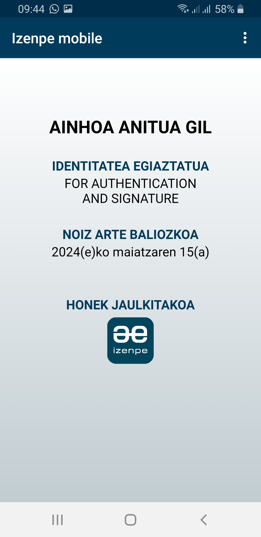 • Zorionak! Jada erabil dezakezu zure ziurtagiri profesionala hodeian Izenpe mobilerekin.
