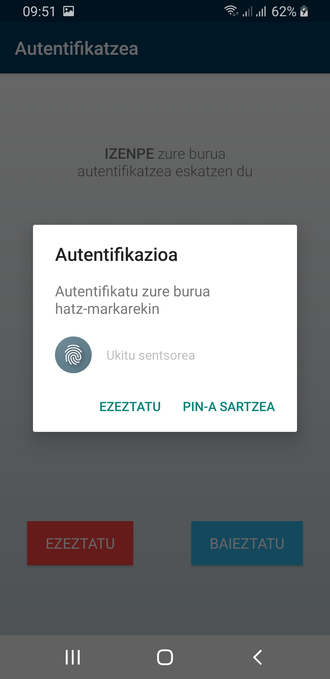 Berretsi PINarekin edo hatz-marka digitalarekin, eta autentifikazioa osatu egingo da.