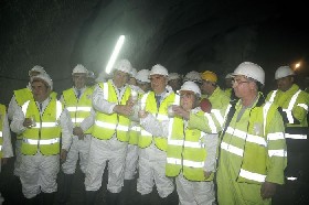 Arriola Sailburua, Bizkaiko Aldun Nagusia, José Luis Bilbao, eta Basauriko alkatea, Loly de Juan, egon dira Bilboko Trenbide Metropolitarreko 2. lineako Ariz-Basauri tunelaren “kale” edo bat egite ekitaldian.