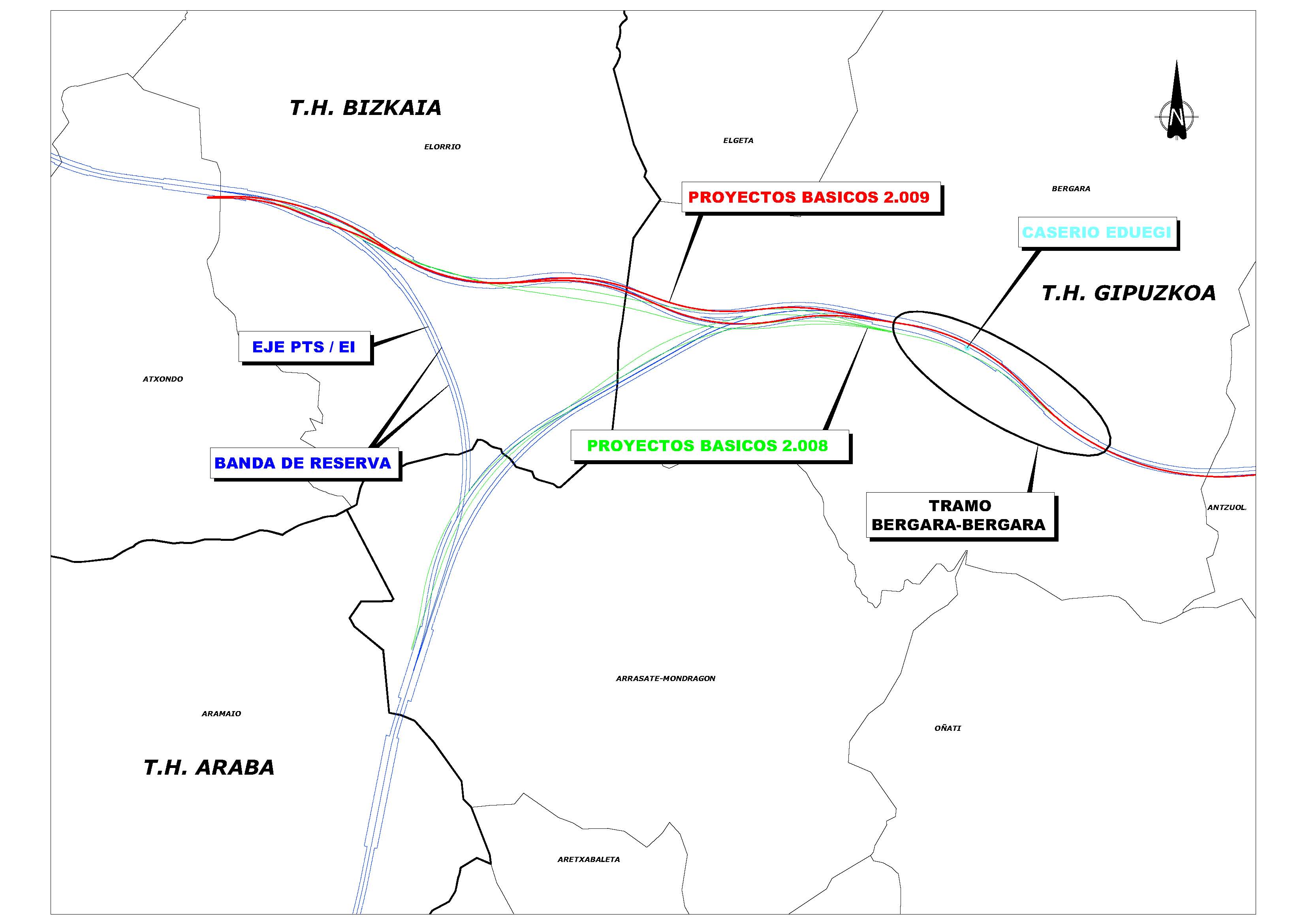 Hala eta guztiz ere, eta aurkeztutako alegazioekin inguru horretako paisaia babestu nahi zutela kontuan izanik, ADIF prest zegoen behin betiko onartutako informazio-azterlanean jasotako trazadura aldarazteko. Planoan ikusten den bezala, trazadura, zati batean lurraldearen arloko planeko erreserba-zerrendatik atera eta informazio-azterlanean ezarritakotik aldentzea aurreikusten zuen konponbideak. Bergara, Arrasate eta Elorrioko udalek ordea alegazioak aurkeztu zituzten (2008/06/2an, 2008/06/3an eta 2008/06/2an hurrenez hurren), oso antzeko argudio juridikoetan oinarrituta.