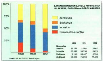 Industria jarduerak behera egin du azken berrogei urteetan, biztanleriak ordea ez, gaur egun 65.000 pertsona gehiago baitaude.