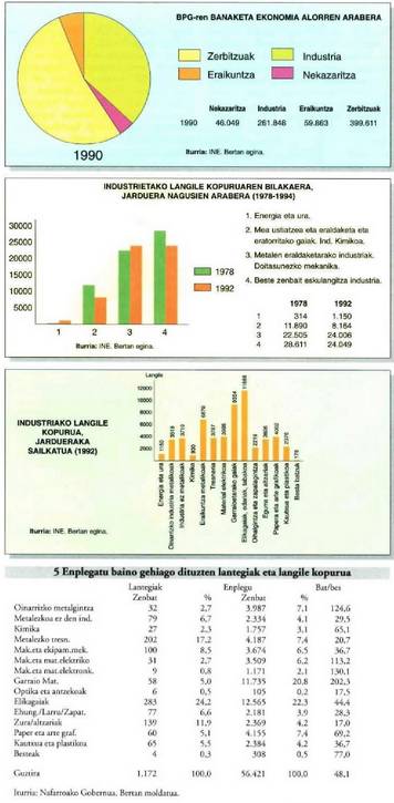 1978an, eta Estatistikako Erakunde Nazionalak egiten duen industria erroldaren arabera, 6.500 edo 7.000 lanpostu inguru galdu ziren, gehienak arlo hauetan: metalen ustiaketa eta lehenengo eraldaketan, material elektriko eta elektronikoan, ehungintzan eta zurgintzan, kortxogintzan eta altzarigintzan. Beste arlo batzuetan, berriz, lanpostu kopurua asko handitu zen: garraio materialgintzan, papergintzan eta grafikagintzan batez ere.