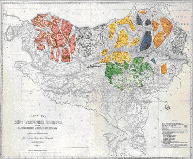 Aipatutako sailkapen horretan 3 multzo handi, 8 euskalki, 25 azpieuskalki eta 50 aldaera berezi zituen. Mapan multzoak, euskalkiak eta azpieuskalkiak agertzen dira.