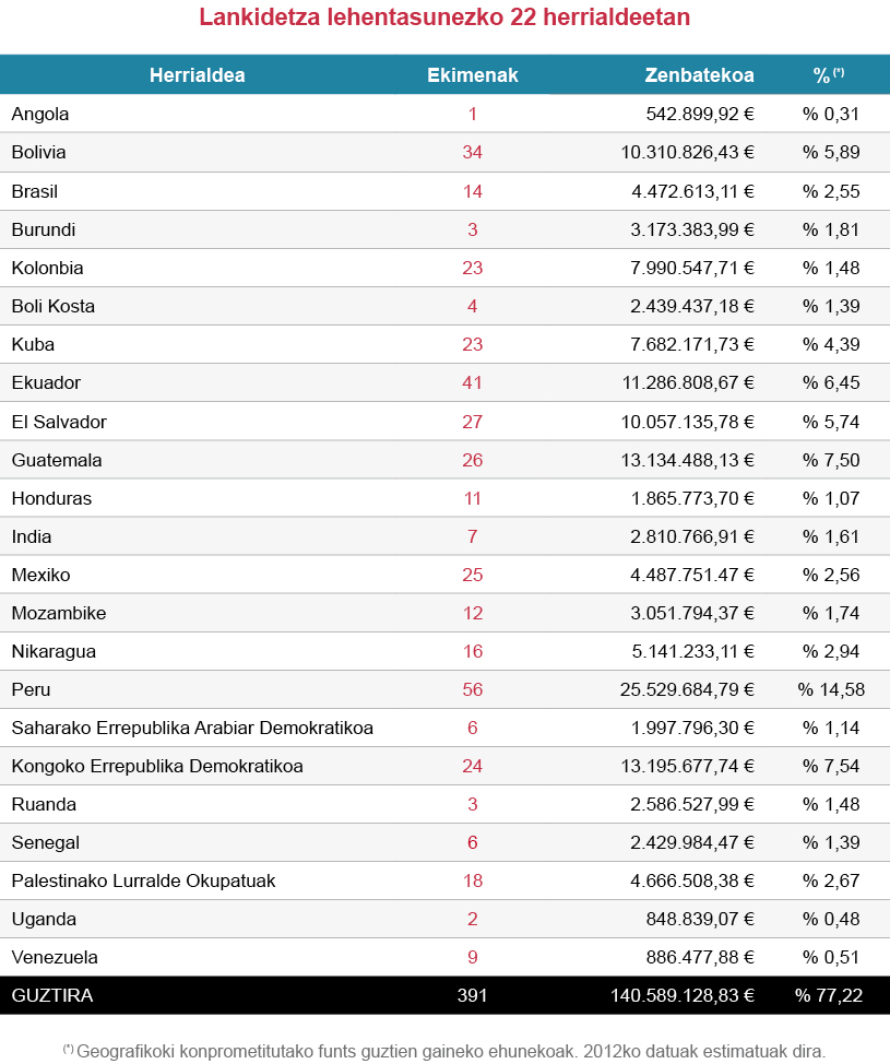 Xede nagusitzat egiturazko pobrezia desagerraraztea duen lankidetza-politika eraldatzailea, kalitatezkoa, koordinatua eta koherentea garatzeko helburuarekin, 22 herrialde lehenetsi dira haien giza garapeneko indizearen arabera, herrialde batek oinarrizko hiru dimentsiotan —bizitza luzea eta osasuntsua izatea, hezkuntza jasotzeko aukerak eta bizitza-maila duina— batez beste lortutako aurrerapena neurtzen duena.