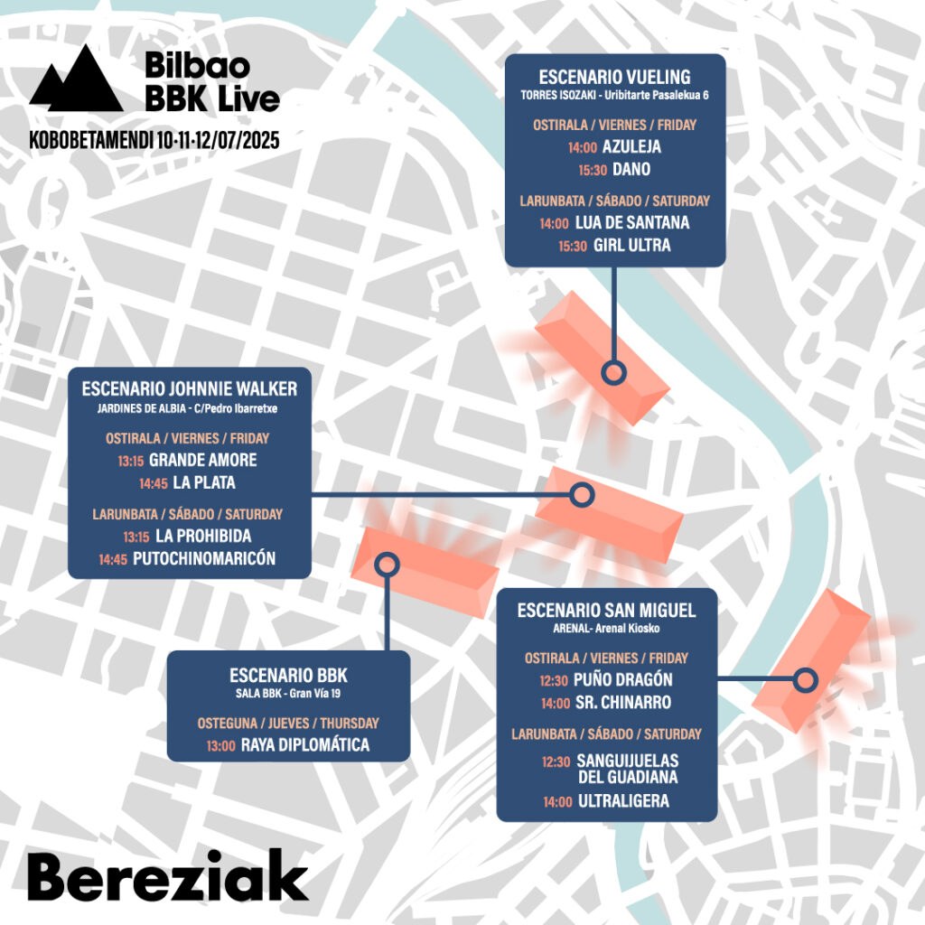 Bereziak es un evento de acceso libre que lleva desde 2011 el espíritu de Bilbao BBK Live al corazón de la ciudad. Organizado por Fundación Industrias Creativas junto a Bilbao BBK Live, Bereziak acerca la música y la cultura a todos los públicos, creando una experiencia única que impulsa la participación ciudadana y aporta valor social a la comunidad.