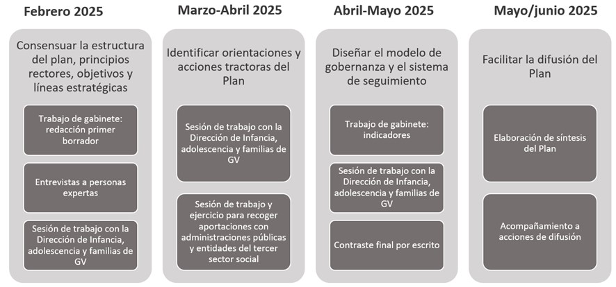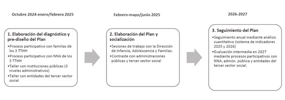 V. Plan honek arreta berezia jartzen du inplikatutako eragile guztien parte-hartzean eta ekarpenetan. Familien, haurren eta nerabeen, hiru administrazio-mailetako erakunde publikoen eta hirugarren sektore sozialeko erakundeen lankidetza dugu. Parte-hartze aktibo eta plural horren bidez bakarrik eraiki ahal izango dugu gure gizartearen beharrei benetan erantzungo dien eta eraldaketarako tresna eraginkorra izango den plan bat.