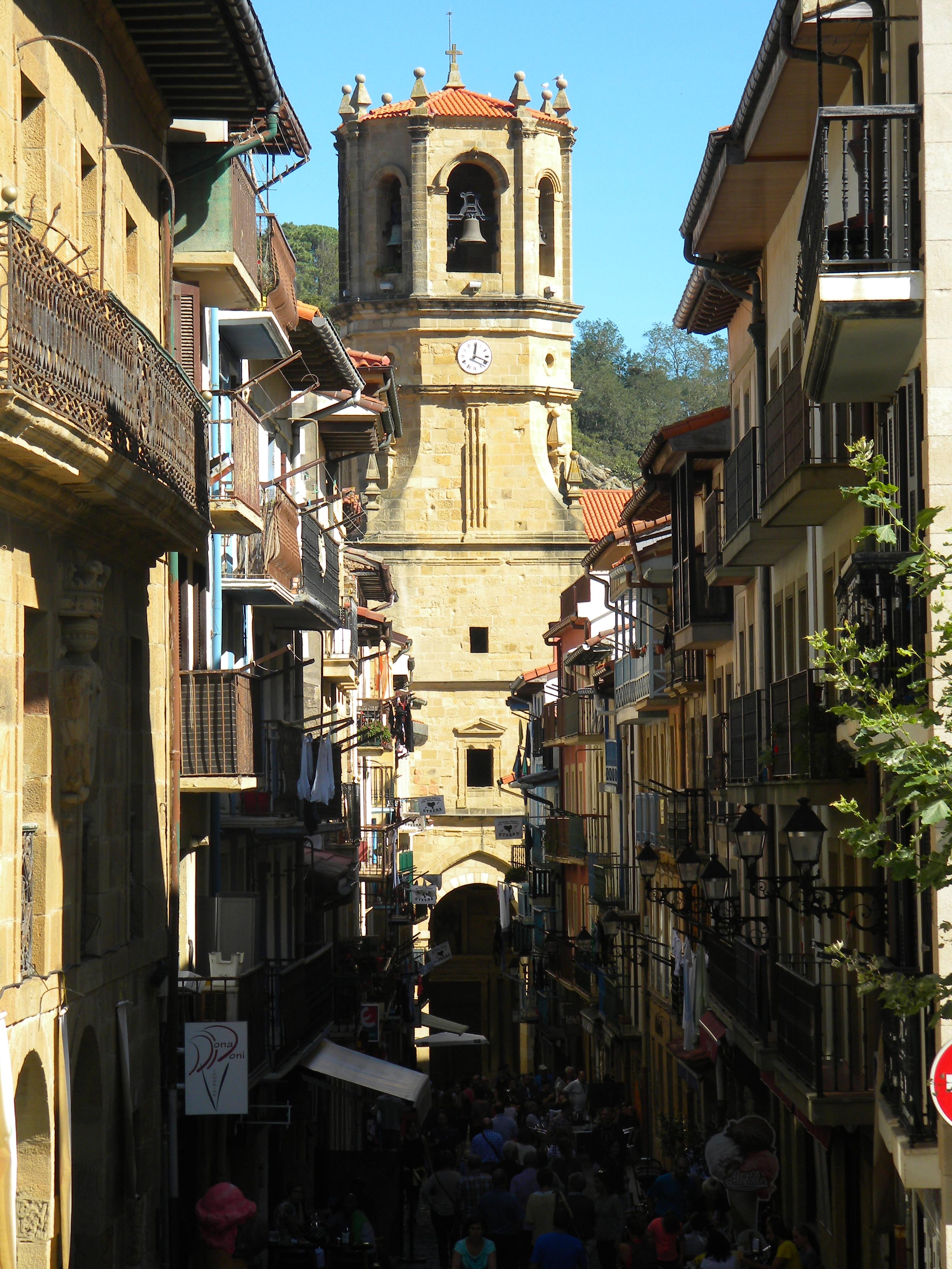 XIX. mendean hiribildua zeharo suntsitua eta berreraikia izan zen arren, alde zaharrak Erromatar Garaiko egitura mailakatua eta etxadien ipar-hego noranzkoa mantentzen du, bai eta Erdi Aroko kale-egitura ere, lau kale paraleloz osatua (jatorrian sei): San Roke, Elkano, Kale Nagusia eta Aldamar, eta lau kantoiz zeharkatua. Erdi Aroko eta Aro Modernoko eraikin batzuk kontserbatzen dira, gutxi-asko eraldatuak: San Salbador eliza gotiko bikaina nabarmenduko dugu. Oinplano txiki, konplexu eta asimetrikoa du, erliebeari egokitua. Aldiz, oso garaia da, eta bat ez, baizik eta bi triforio ditu erdiko nabearen perimetroan zehar. Nabeen estalki gisa gurutzeria-gangak ditu, kontaketadun giltzarriak dituztenak.